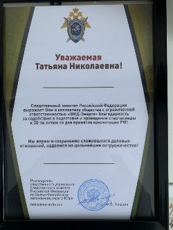* Благодарственное письмо руководителя следственного управления Следственного комитета РФ по ХМАО-Югре полника юстиции М.В.Мокшина - (смотреть)
